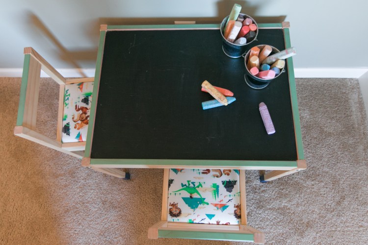 Noah was ecstatic about the new addition to his room! He can write on the chalkboard or use the table for any other crafts. Plus, clean up is easy.
